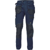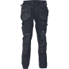 pánske pracovné nohavice; elastická inovativna tkanina TRIFIBETEX – ergonomický strih; nízky elastický pás; trvanlivé trojité prešívanie nohavíc a rozkroku; zosilnená oblasť kolien s možnosťou vloženia kolenných výstuh; priestranné multifunkčné predné vrecká s popruhom na náradie; 2 zadné vrecká s príklopkami s oxfordským vystužením; stehenné vrecko na telefón s príklopkou so suchým zipsom; vrecko na pravítko; vrecko na nôž; oko na kladivo; D-krúžok; popruh na nástroj v pase; pôvodné spracovanie zapínania rozparku; reflexný odtieň vo farebných častiach; predĺžiteľná dĺžka