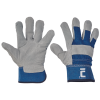 Rukavice z jedného kusa silnej hovädzej štiepenky v dlani s podšívkou, bavlnená tkanina na chrbte, s bavlnenou vystuženou manžetou, celokoženými palcami a ukazovákmi a prekrytými špičkami prstov.