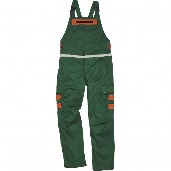 Nohavice na traky odolné voči porezaniu. Spodná časť nohavíc na zips. Vystužené kolená. Nastaviteľné sťahovanie v páse na oboch stranách gombíkmi. Nastaviteľné elastické traky. 5 vreciek, vrátane vrecka na meter.