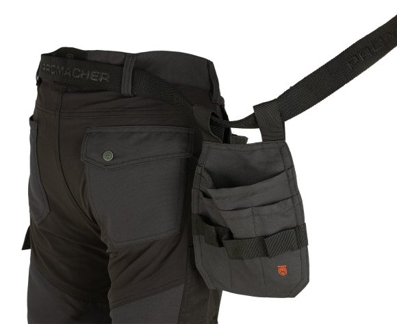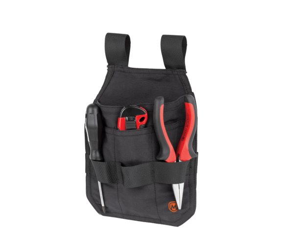 Prídavné vrecko na náradie z pevného materiálu Má väčšie vrecko na klince, nity, skrutky a iné ostré predmety, a 3 menšie vrecká na ceruzku, skladací meter, skrutkovač ai. Vrecko má pútka na zavesenie náradia (kladivo, kliešte, skrutkovač ai.). Dá sa prať na 40° C. Nezahŕňa náradie.