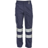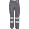 pánske pracovné nohavice so 7 cm reflexnými doplnkami a elastickým pásom, 2 bočné vrecká + 1 vrecko na drobné, 2 stehenné vrecká, 2 zadné vrecká, nastaviteľná dĺžka nohavíc
