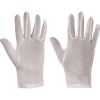 Rukavice šité z jemného jednoduchého nylonového úpletu podľa strihu „fourchette“, bez manžety.
