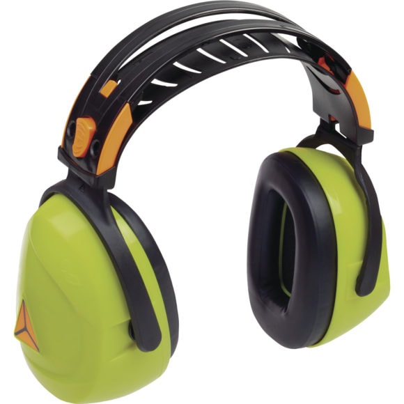 Chrániče sluchu s mušľami z ABS. Vystlané syntetickou penou. Dvojitý, plastový oblúk (POM) s kovovou podporou. Výškovo nastaviteľný, s mäkkým odvetraným spevnením pre vyšší komfort.