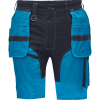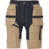 pánske pracovné šortky z elastického materiálu, 2 postranné vrecká, 2 multifunkčné vrecká na náradie, „D“ krúžok, 1 bočné vrecko, 1 vrecko na zips, 2 našité zadné vrecká, dekoratívne prešitie