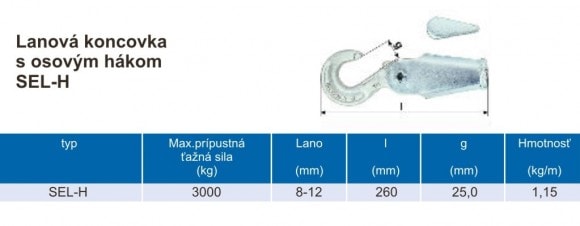 Lanová koncovka s osovým hákom SEL-H
