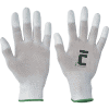 Pletené, bezšvové, nylonové, rukavice s tenkou vrstvou polyuretánu na špičkách prstov a pružnou manžetou.