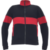 pánská celozapínacia mikina so stojačikom z nepočesaného výplnku zmesi bavlny a polyesteru; 2 postranné lištové vrecká s kontrastným lemovaním; elastické manžety a spodný okraj mikiny z ribového úpletu; kontrastná časť na hrudníku a hornej časti rukávov