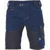 pracovné šortky z predpraného DENIM materiálu, slim strih, znížený pružný pás, odolné trojité prešitie nohavic a sedu, 2 predné klínové vrecká, 2 zadné vrecká na suchý zips, ľavé stehenné multifunkčné vrecko, pravé stehenné vrecko na meter a nôž, „D“ krúžok, pútko na náradie v páse, CORDURA zosilnenie v oblasti kolien, originálne spracovanie zapínania nohavíc, reflexné prvky vo farebnom odstieni, nastaviteľná dĺžka nohavíc. Materiál: 97% bavlna, 3% elastan, 370 g/m2.