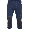 pracovné 3/4 nohavice, elastický inovatívny materiál TRIFIBETEX PRO, slim strih, znížený pružný pás, odolné trojité prešitie nohavic a sedu, 2 predné klinové vrecká, 2 zadné vrecká na suchý zips, ľavé stehenné multifunkčné vrecko, pravé stehenné vrecko na meter a nôž, „D“ krúžok, pútko na náradie v páse, CORDURA zosilnenie v oblasti kolien, originálne spracovanie zapínania nohavíc, reflexné prvky vo farebnom odtieni. Materiál: 90% nylon, 10% Spandex®, 240 g/m2.