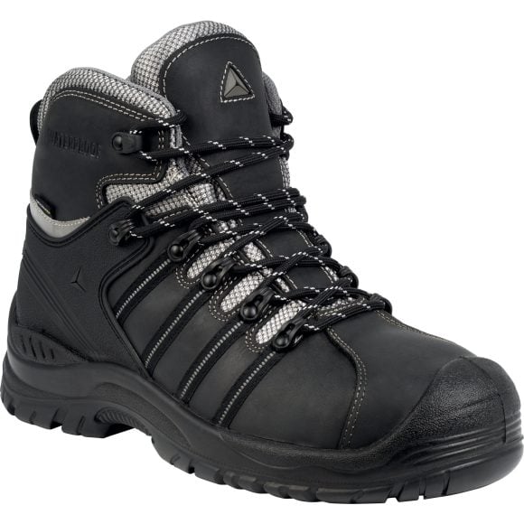 Zvršok: koža – lícová useň, S3 vodeodolná úprava. Podšívka: nepremokavá DELTA-TEX™ membrána z polyesteru. Vnútorná vložka: polyester/EVA, vyberateľná s klenbou. Vnútorná podrážka: dvojzložkový PU nástrek. PU ochrana pred nárazom. Bez kovových častí.