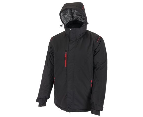 Vodeodolná zimná bunda, ktorá má kvalitné dvojité šitie pre väčšiu odolnosť, predĺženú chrbtovú dĺžku, odolnosť materiálu proti prieniku vody 8000 mm mimo oblasť švu, reflexné prvky pre lepšiu viditeľnosť, dvojcestný zips s krycou lištou s cvočkami, 2 vonkajšie vrecká na zips, náprsné vrecko na zips, vnútorné vrecko na telefón s vývodom na slúchadlá, odopínaciu kapucňu, elastické vnútorné manžety s otvormi pre palce, nastaviteľnú šírku manžiet rukávov pomocou suchého zipsu, reguláciu obvodu bokov a odopínací snežný pás.