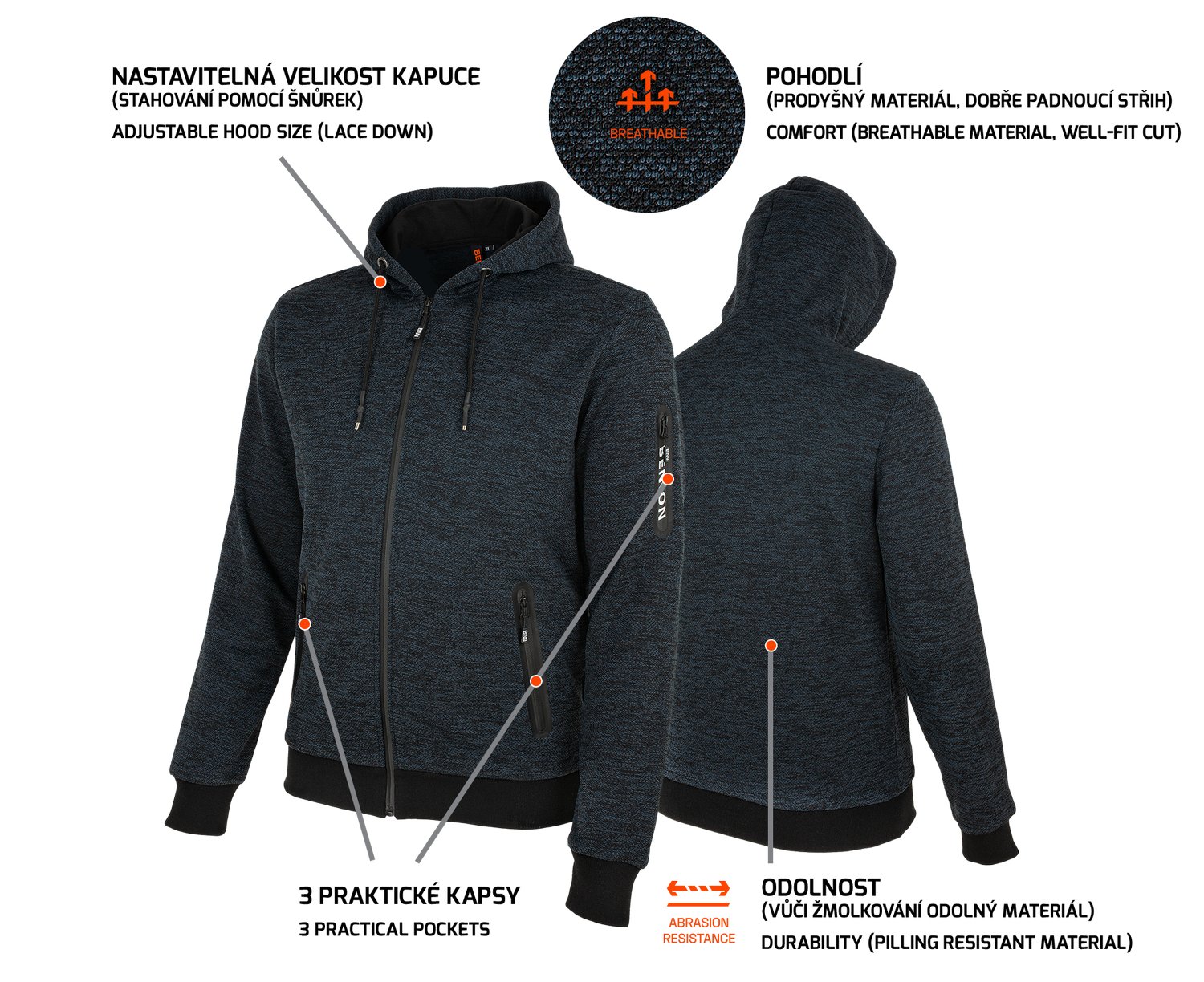 OLYMPOS SWEATSHIRT BLUE/GREY mikina s kapucňou