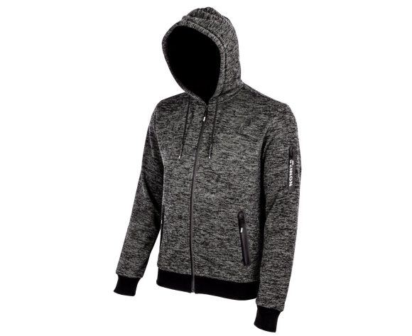 Priedušná, pružná, veľmi pohodlná pánska mikina z príjemného, pevného, voči žmolkovaniu odolného materiálu (testované v BENNON laboratóriu – 3,2 väčšia odolnosť voči žmolkovaniu ako stanovuje štandard). Mikina má dobre padnúci strih, 2 bočné vrecká na zips, praktické vrecko na zips na rukáve, pružnú manžetu pri obvode bokov a na rukávoch a nastaviteľnú veľkosť kapucne.