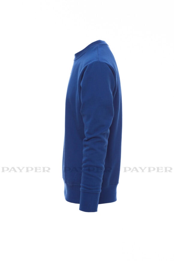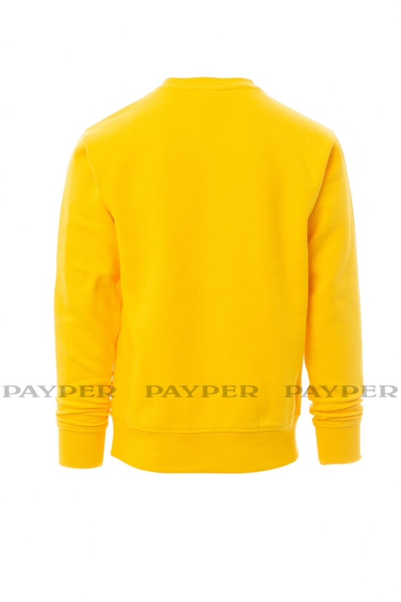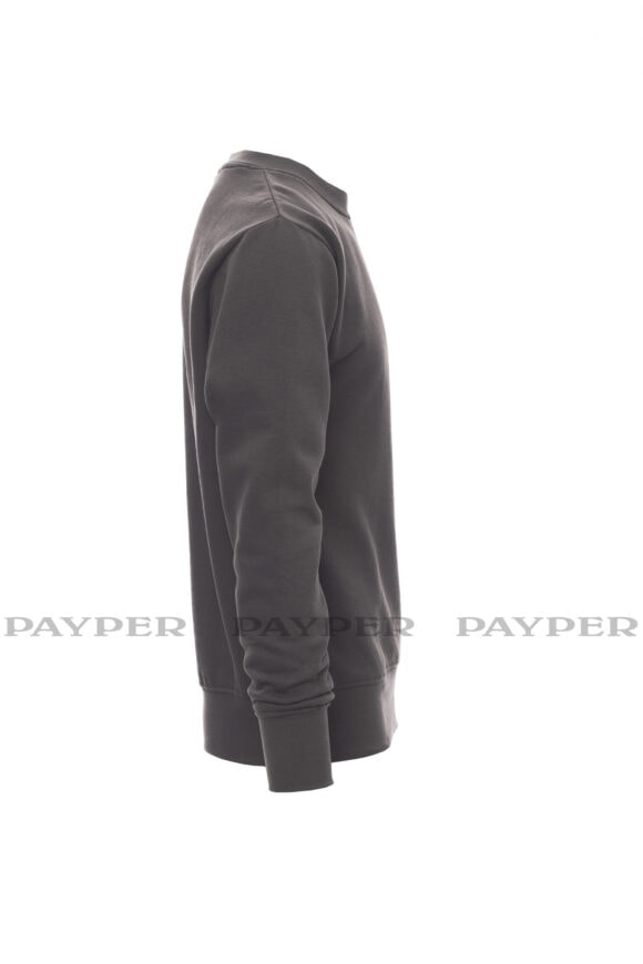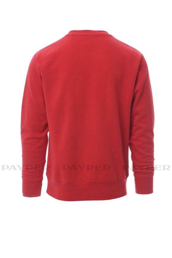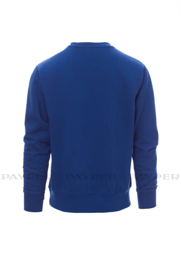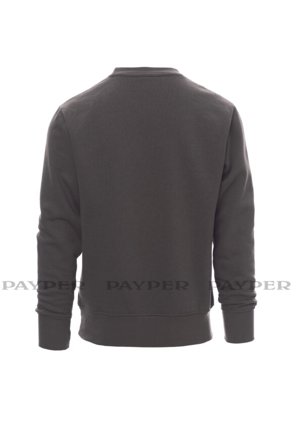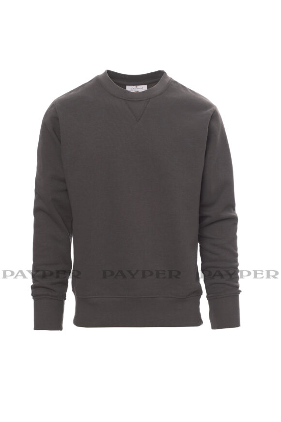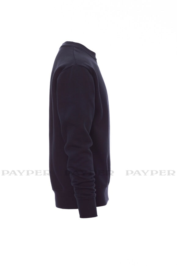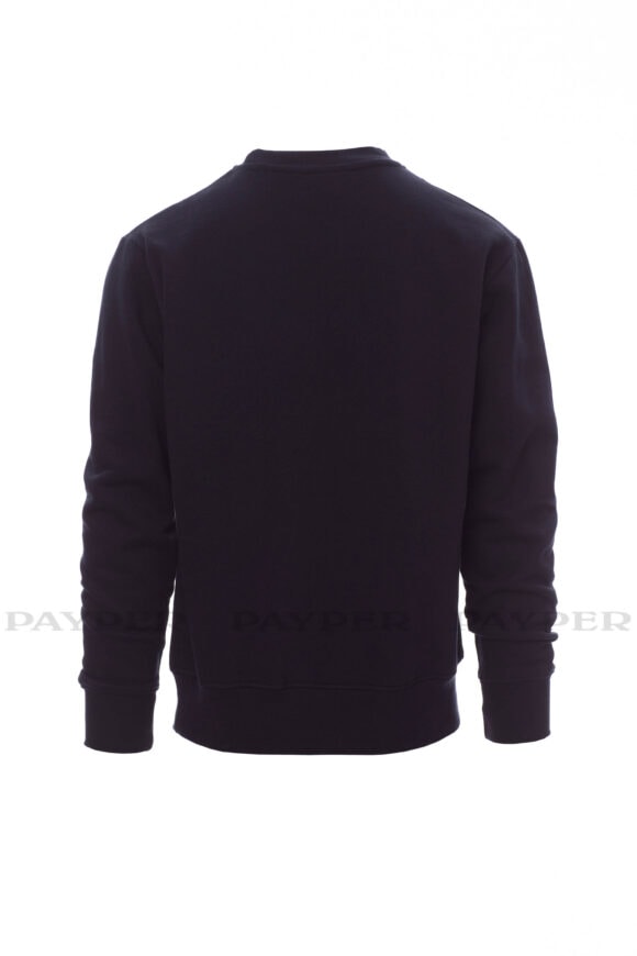 Pánska mikina s okrúhlym výstrihom, V-prešívanie pod krkom, všívané rukávy, manžety a pás s elastickým rebrovaním, zosilnené švy.