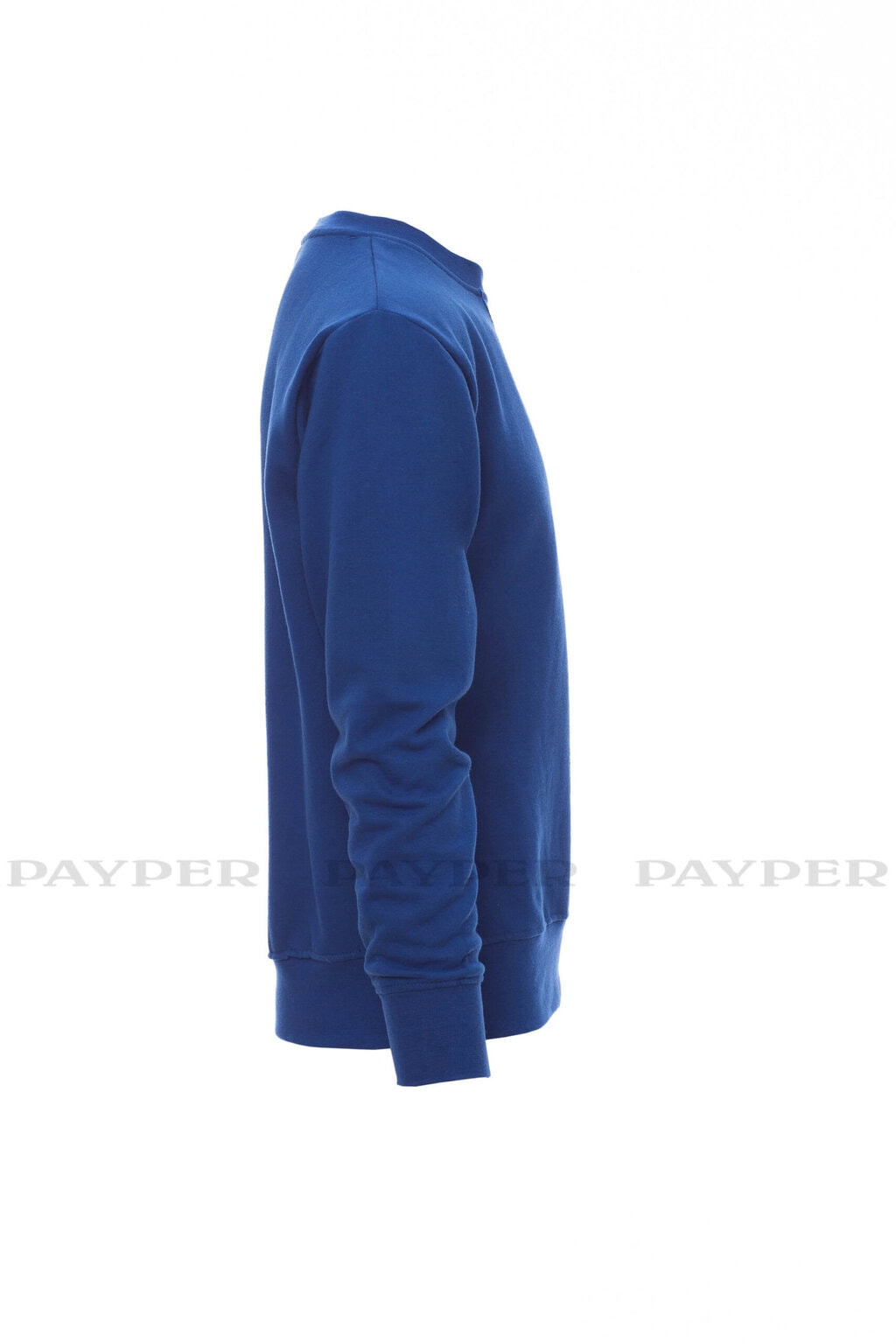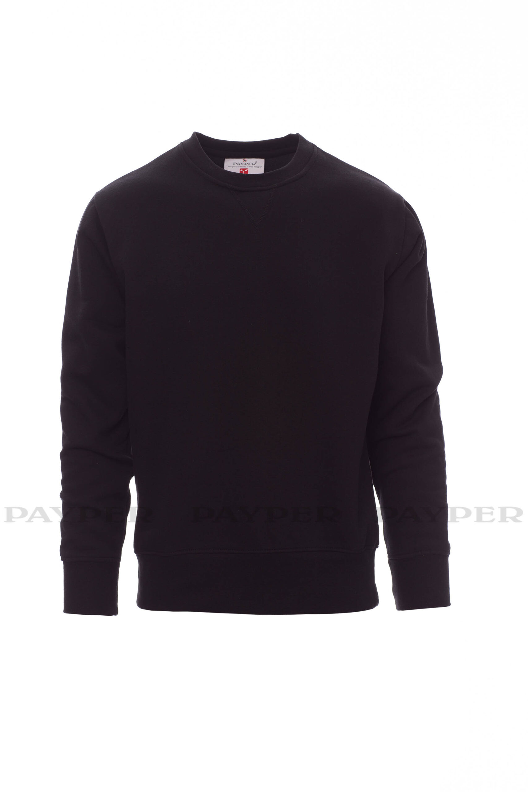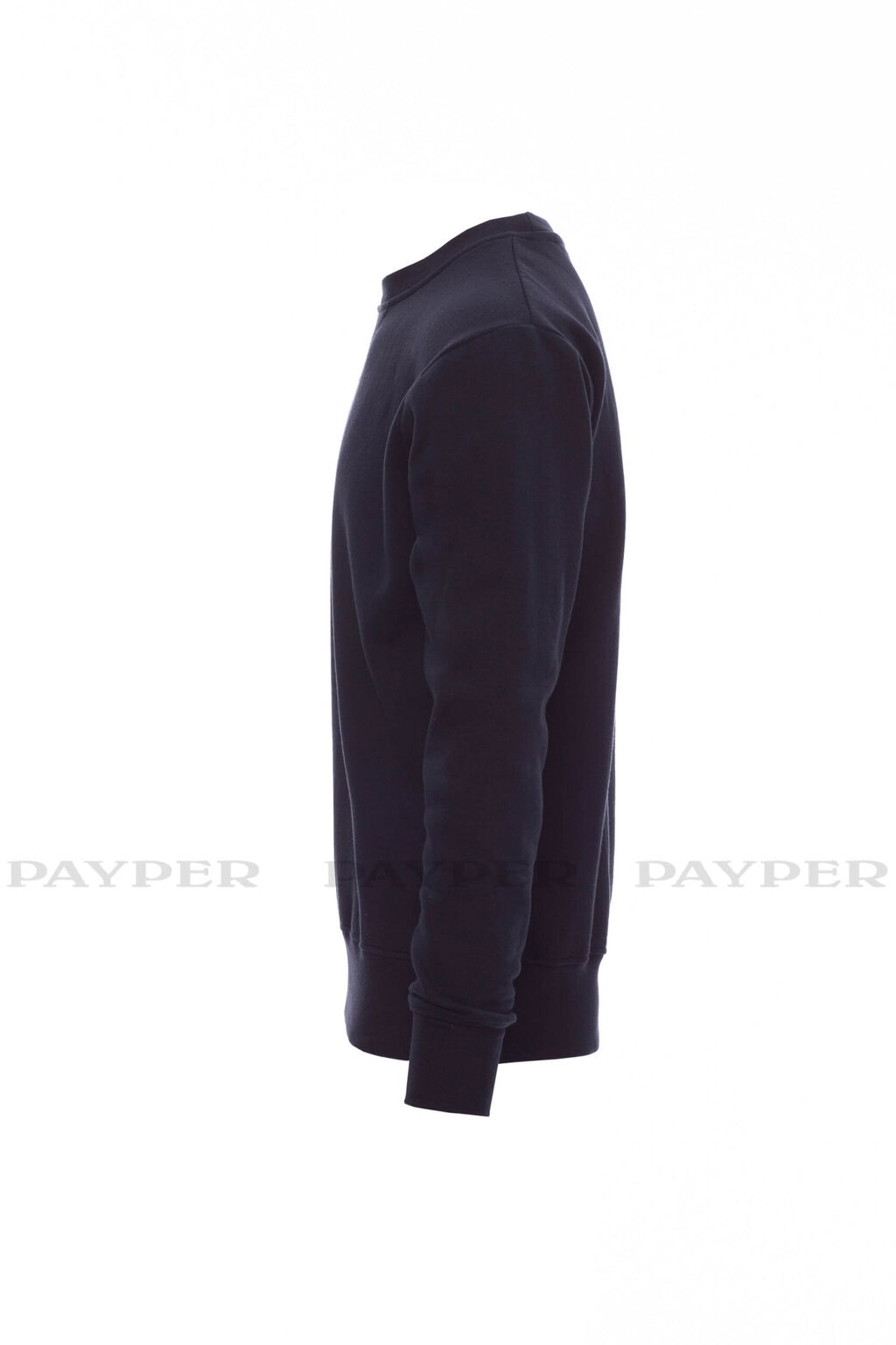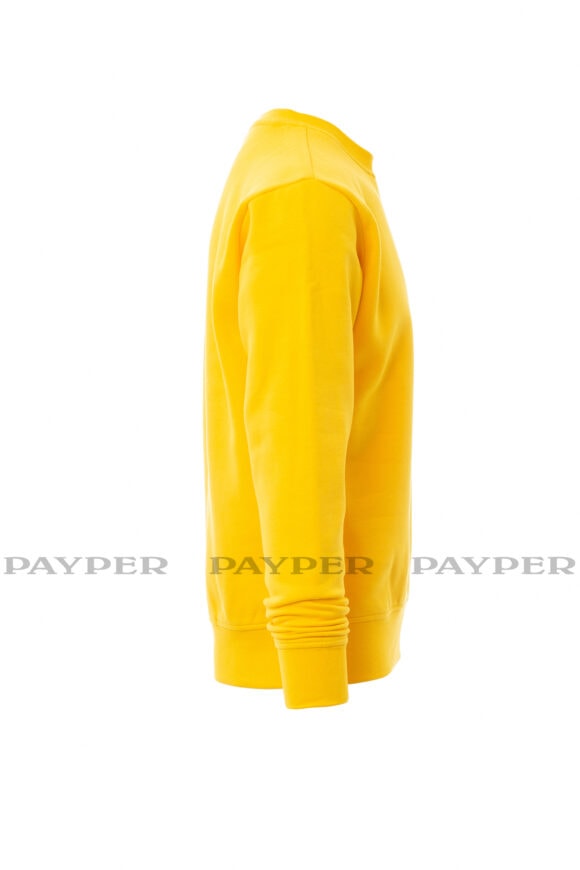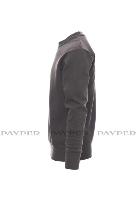 Pánska mikina s okrúhlym výstrihom, V-prešívanie pod krkom, všívané rukávy, manžety a pás s elastickým rebrovaním, zosilnené švy.