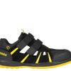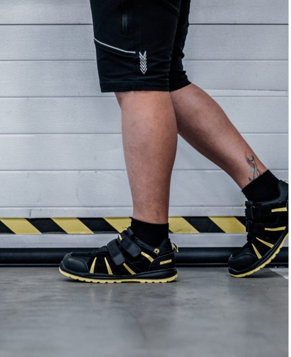 Bezpečnostné nonmetalické sandále sú vyrobené z kombinácie štiepenej usne a textílie MESH. Uzatváranie obuvi je rýchle a jednoduché, pretože je tu použitý suchý zips. Neoddeliteľnou súčasťou tejto obuvi je taktiež kompozitná tužinka, ktorá ochráni prsty na nohách v krízových situáciách. Pohodlie pri nosení zaisťuje odpružená päta.