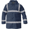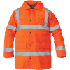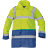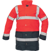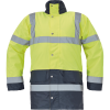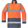 Výstražná, zateplená a nepremokavá bunda s vysokou viditeľnosťou podľa normy EN 471, s paropriepustnou PU vrstvou, kapucňou v golieri, vodeodolnosťou tr. 3 podľa normy EN 343 a paropriepustnosťou tr. 1 podľa normy EN 343.