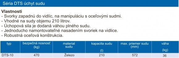 – Svorky zapadnú do vidlíc, na manipuláciu s oceľovými sudmi.