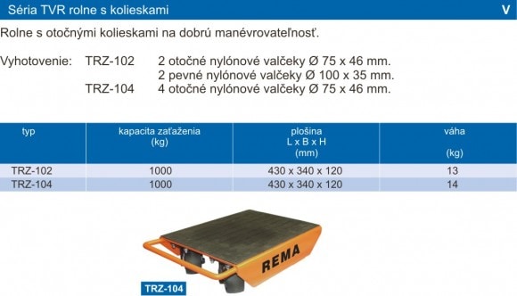 Vyhotovenie: TRZ-102 2 otočné nylónové valčeky ? 75 x 46 mm.