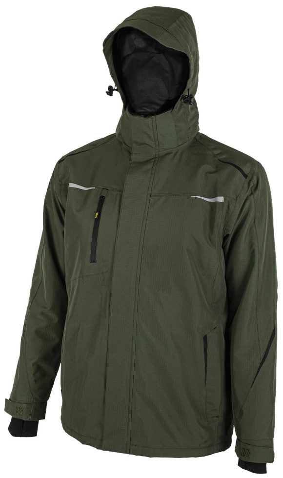 Odolná zimná bunda z RIPSTOP materiálu, ktorý sa vyznačuje pevnosťou, odolnosťou a ľahkosťou. Vodný stĺpec 5000 mm, priedušnosť 3000 g/m2/24h. Bunda má reflexné prvky na prsiach a chrbte pre lepšiu viditeľnosť, vodoodpudivý záter vrchového materiálu, nastaviteľnú a odopínaciu kapucňu (možnosť kapucňu zbaliť do goliera), odolnosť voči vetru aj vode, 3 vrecká na zips a nastaviteľnú šírku manžiet rukávov pomocou suchého zipsu. Využitie pre prácu aj voľný čas.