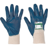 Rukavice šité z bavlneného úpletu, polomáčané v nitrile a s pružným nápletom.