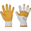 Pletené rukavice zo silnej zmesovej priadze polyester/bavlna, napustené latexom. Povrstvenie na chrbte zaisťuje dodatočnú ochranu kĺbov.